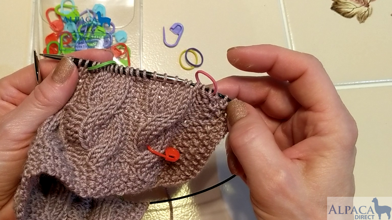 Kelley discussed locking stitch markers and loop stitch markers. She shares knitting tips on how to transfer the stitch marker to your other needle and use it to mark transitions in your pattern.