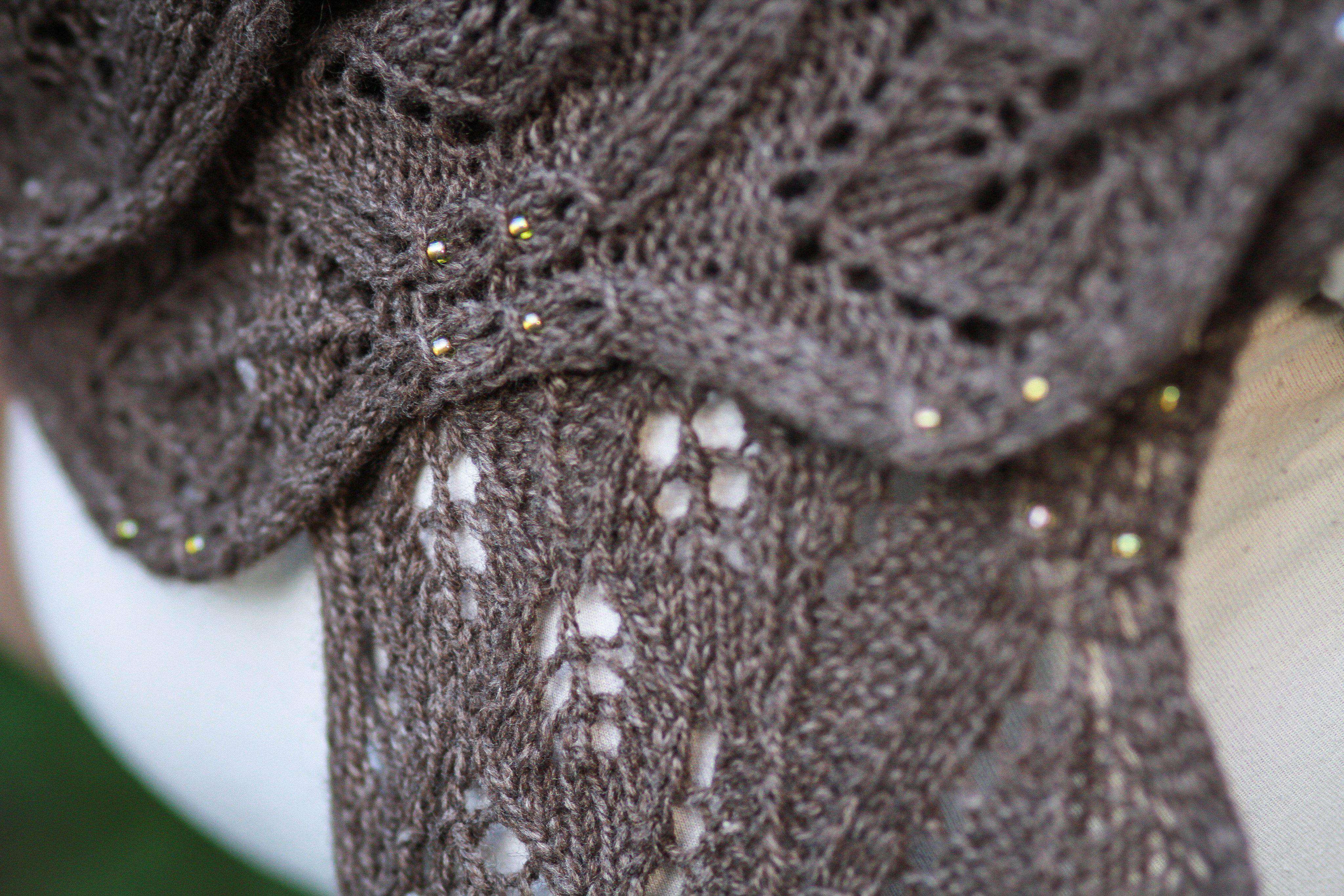 Tapestry needle, 72 Size 6 Toho beads color #996, cable needle, stitch markers, Size 10 (US size 14) 0.75mm crochet hook.