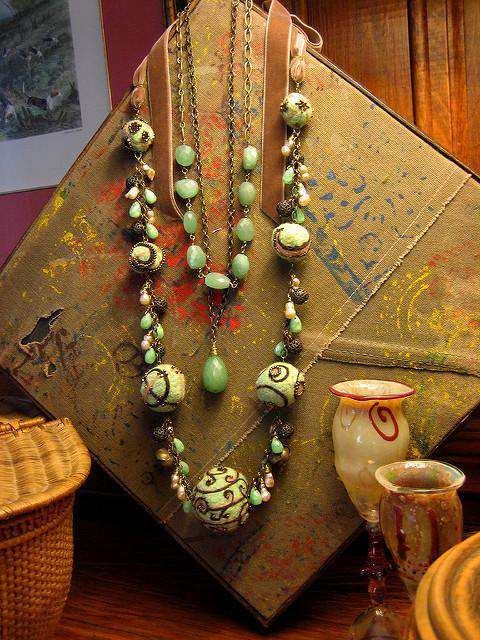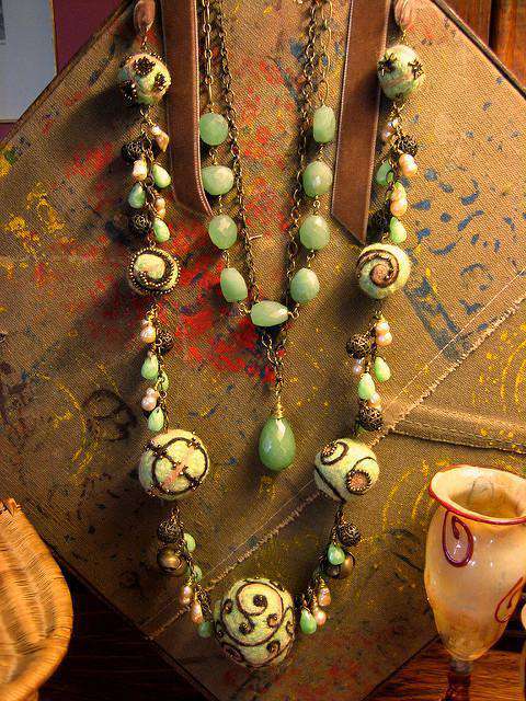 The first time I wore this necklace, I was trying to keep pace with the fashion designers and their long layers with big baubles.  I must say, I FELT a little like my son's solar system science project.  Oh the things we do as fashion slaves! Choose a tiny choker using only the smallest size, or long layers of planet sized beads. How about earrings or a purse handle for your Stitch Poet Clutch! Holiday ornaments? .