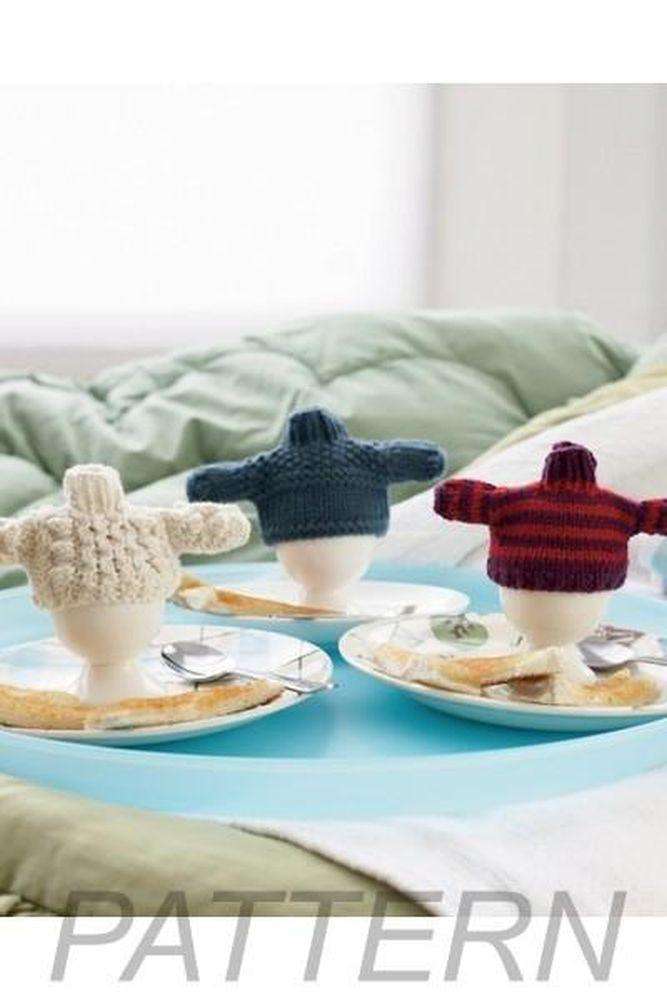 Whimsical sweaters for your eggs! Charming on Christmas morning. Features Rialto DK Requires pair of 3.5mm (US 4) knitting needles