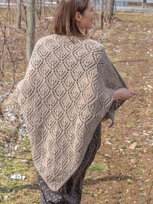 Wrap yourself in delightful warmth in our all-over texture shawl, Dover. Worked from the bottom up, it’s a perfect layering piece for fall.