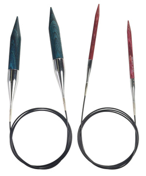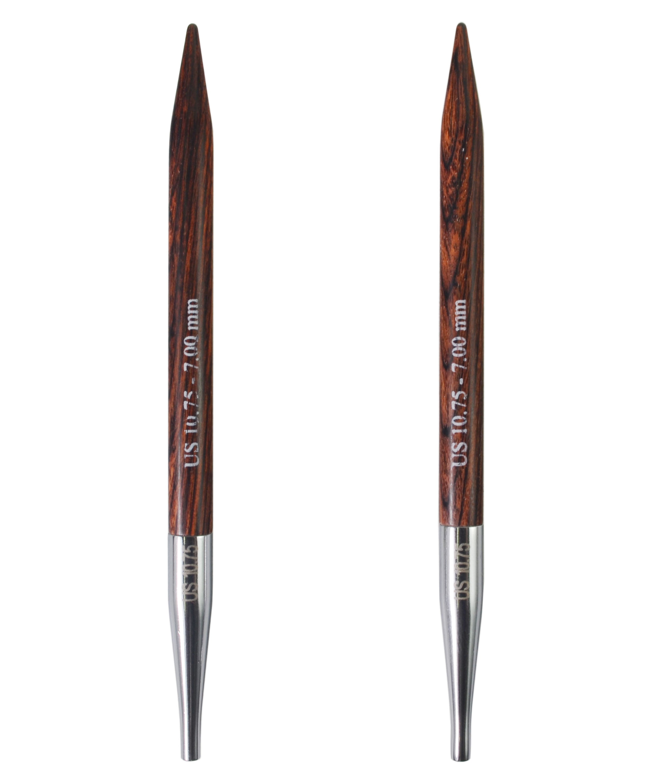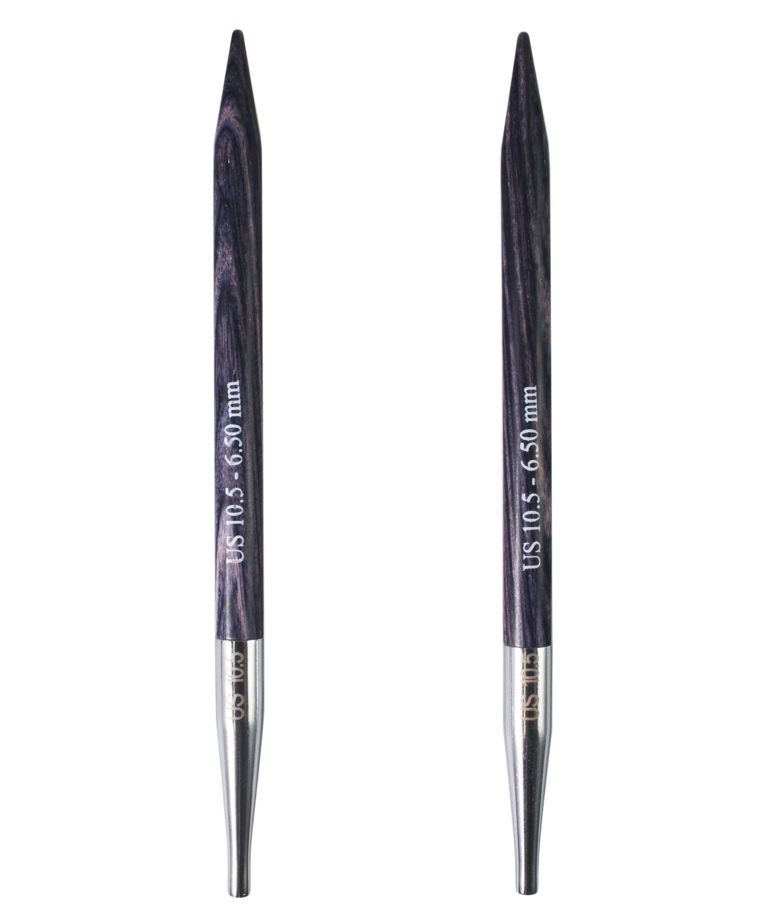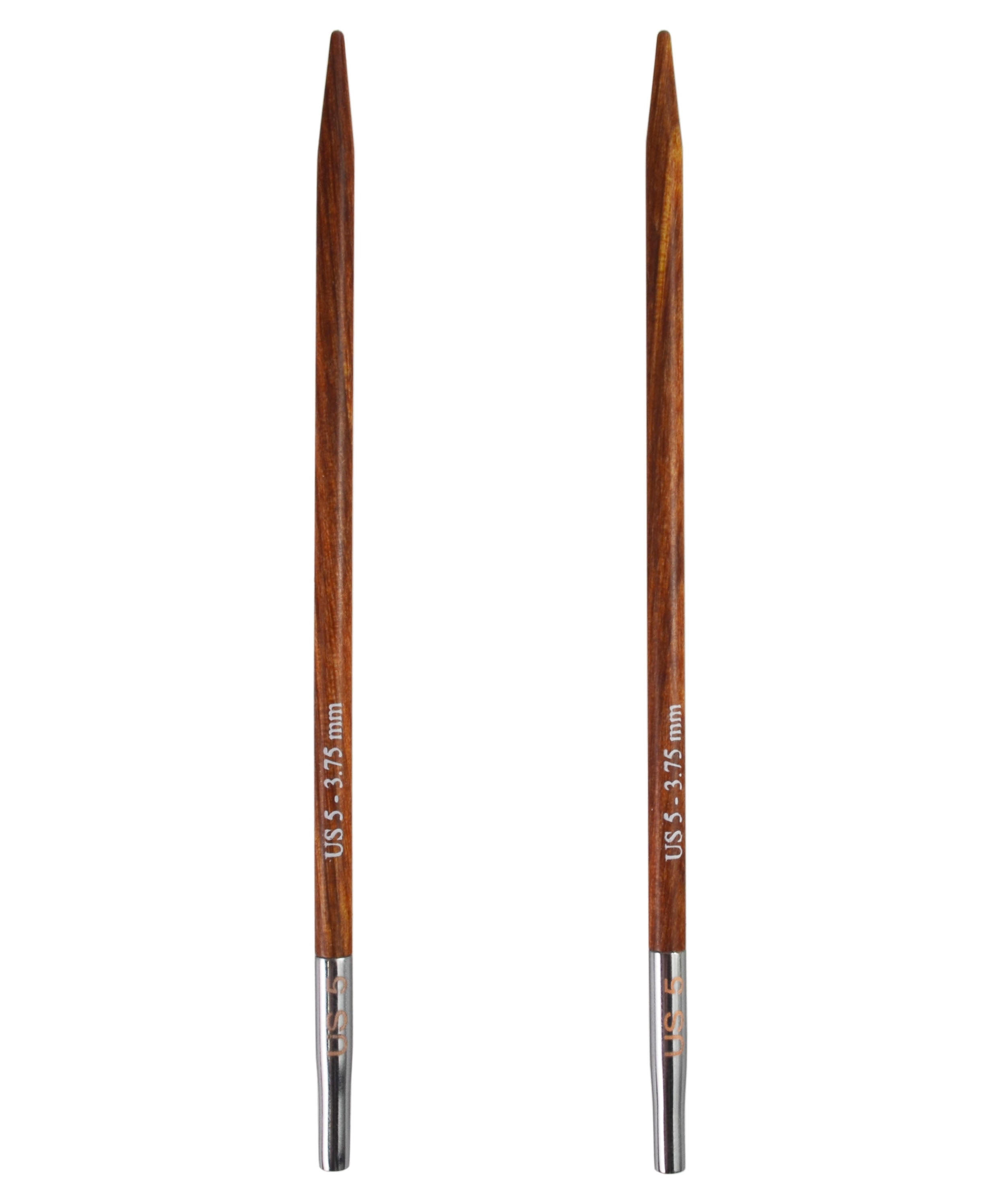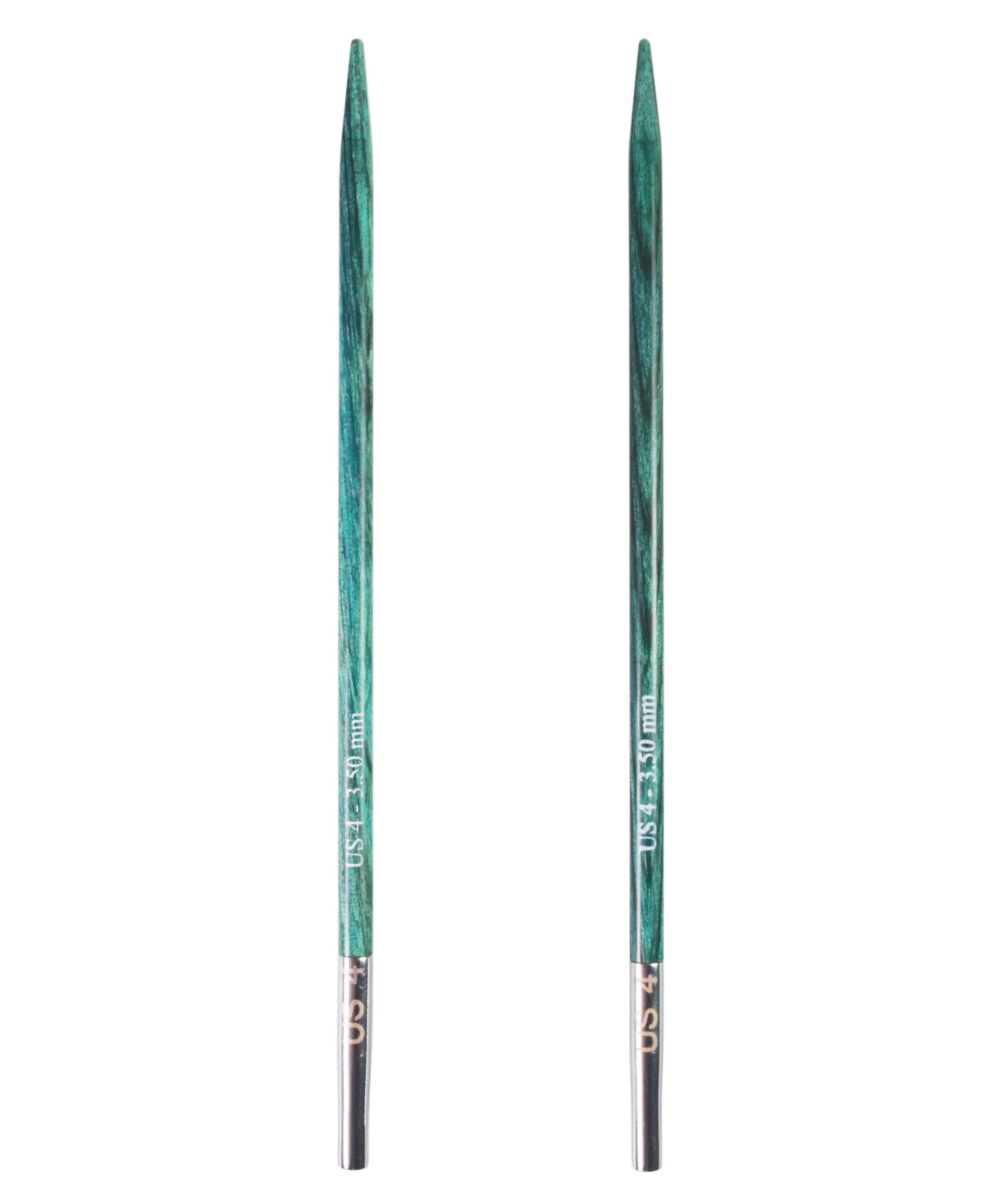 These needles can be used with any of the Knitter['s Pride Cords.  Comes in a set of 2 dreamz interchangeable circular needle tips.  They are easy to use and perfect for beginners. Polished wood surface works effortlessly with every type of yarn without slowing down stitch rhythm. Easy to connect cord with a smooth join that enables easy stitch glide and no snagging. Perfect points, flawlessly tapered – ideal for all yarns and every project. Cords Not included and sold separately.