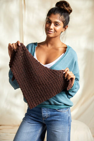 This bandana is crocheted flat from tip to widest edge. An increase is made on every row, but only along one edge, creating the triangular shape. This pattern is both written and charted for your convenience.