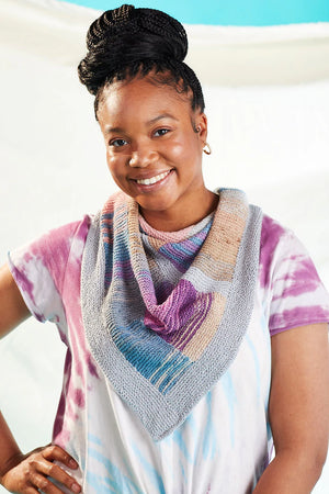 Perfect for a confident beginner, Exhilarate Revisited reintroduces one of our beloved shawl patterns and marries it with fan-favorite Bamboo Pop Sock! We’ve paired solids and self-shading colors in this glorious garter stitch accessory. Looking to build your skills? We’ve implemented a touch of intarsia and striping for a colorful effect sure to turn heads. This accessory is so lightweight and drapey – it’s perfect for summer!