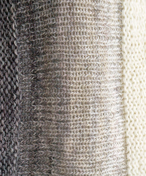 This scarf is worked holding 3 strands of yarn together throughout—sometimes 3 strands of the same color, sometimes 2 strands of one color with 1 strand of another.