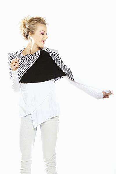 • Universal Yarn Bamboo Pop (50% cotton, 50% bamboo; 100g/292 yds) • 101 White (C1) – 1 skein • 115 Silken (C2) – 1 skein • 112 Black (C3) – 2 skeins