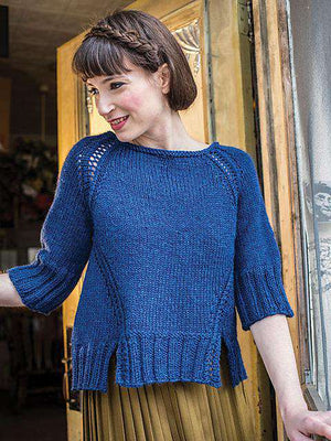 Maison Delaunay is an exquisite, swingy pullover worked top down in the round with eyelet details.