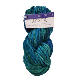 Great for: Quick knits, textured stitches, hats, cowls, scarves, outerwear. Be sure to get enough yarn to complete your project since each bag is a different dye lot, and skeins may vary from bag to bag. In the tagged (*) colors, the skeins may vary one from the other even within the same bag. To ensure random color distribution, work from two balls of yarn at once, alternating a few rows from each ball. Rasta is a super bulky weight, single ply, slightly felted finish, 100% merino wool yarn