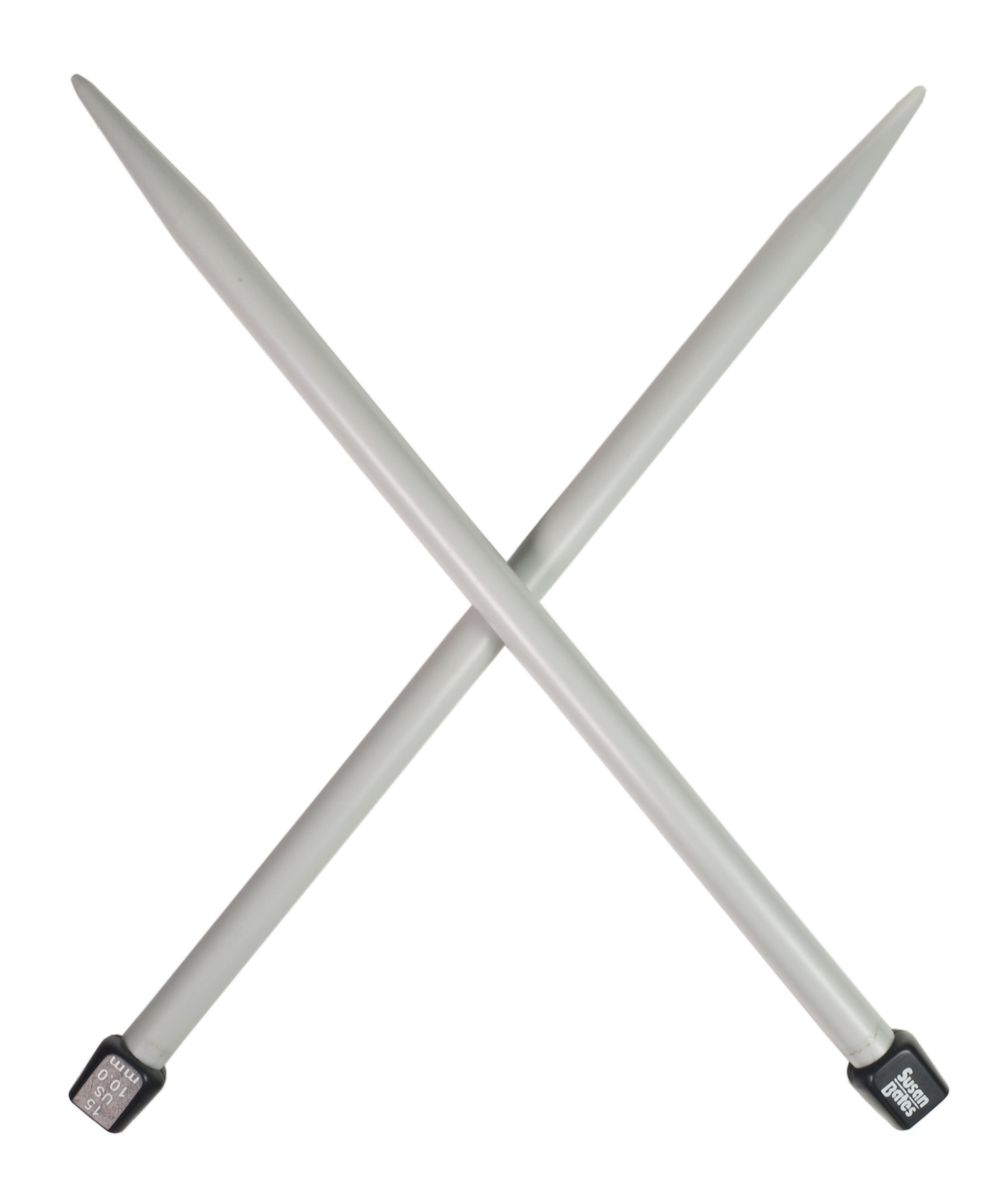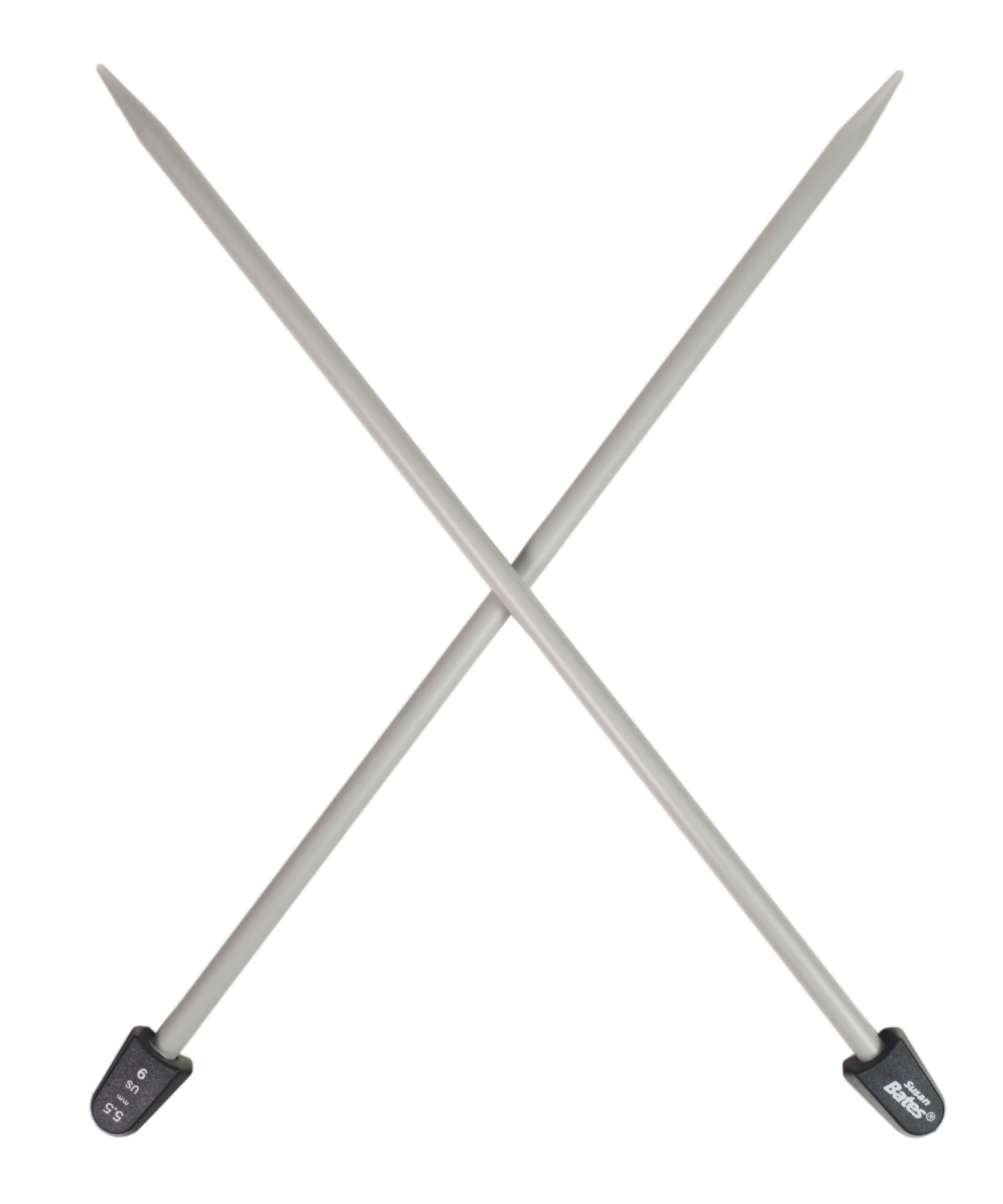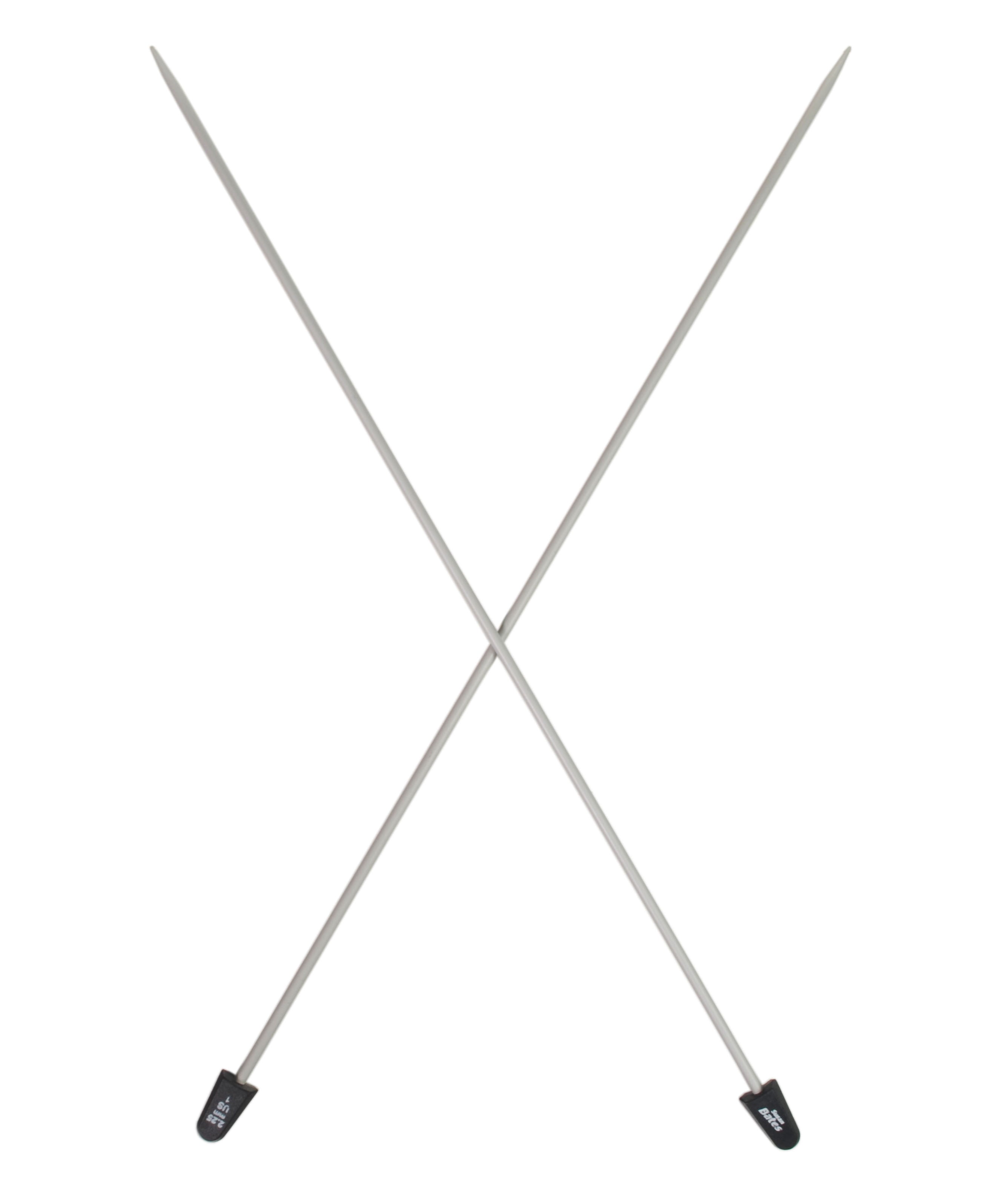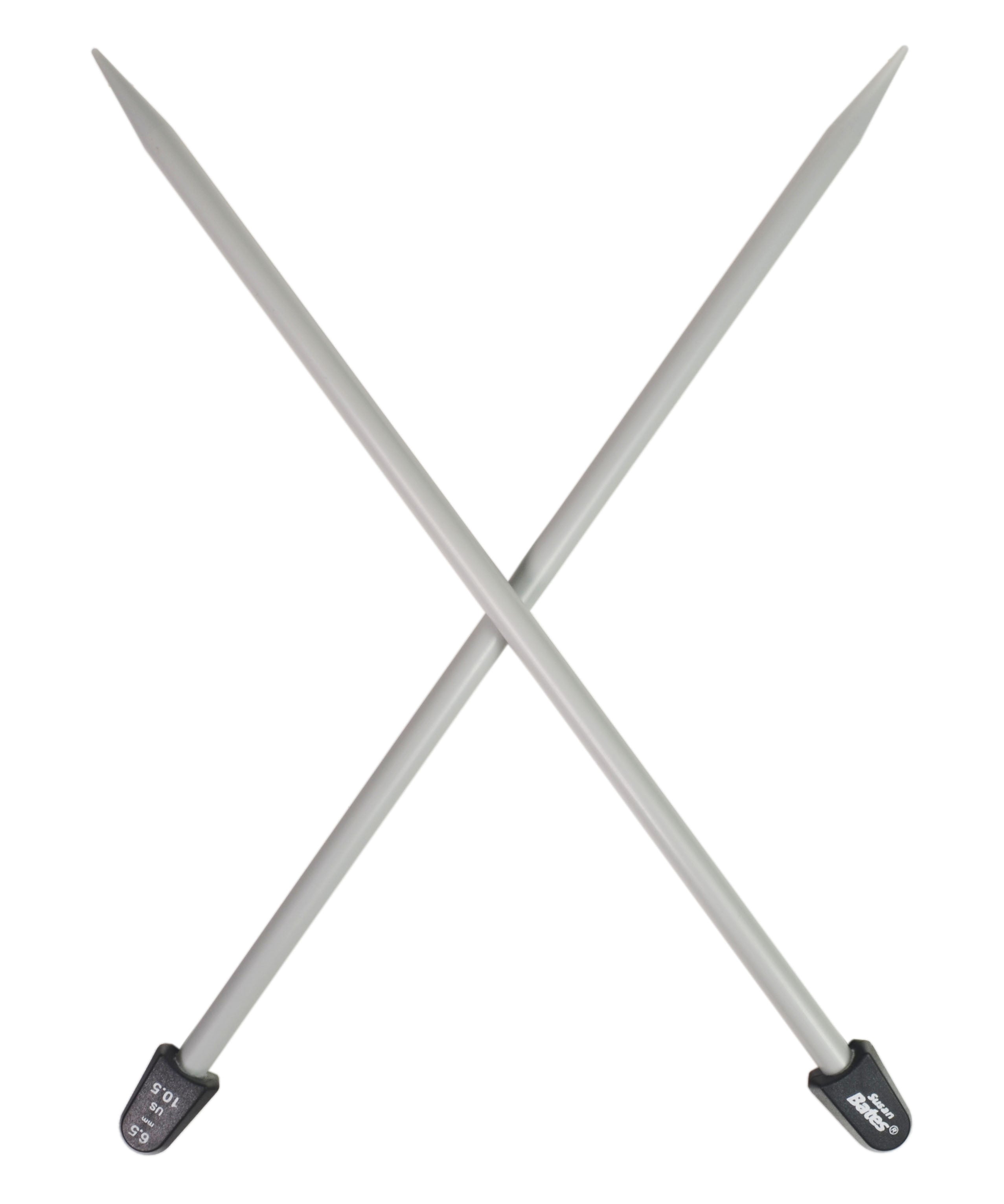 Quicksilver needles are soft grey in color, a result of a special anodization process which gives all Quicksilver needles and hooks an exceptionally smooth, glass-like finish. As weight is a key factor with comfortable needles, the large needles (sizes 9 and up) are a solid plastic shaft. Susan Bates 10” single point knitting needles.