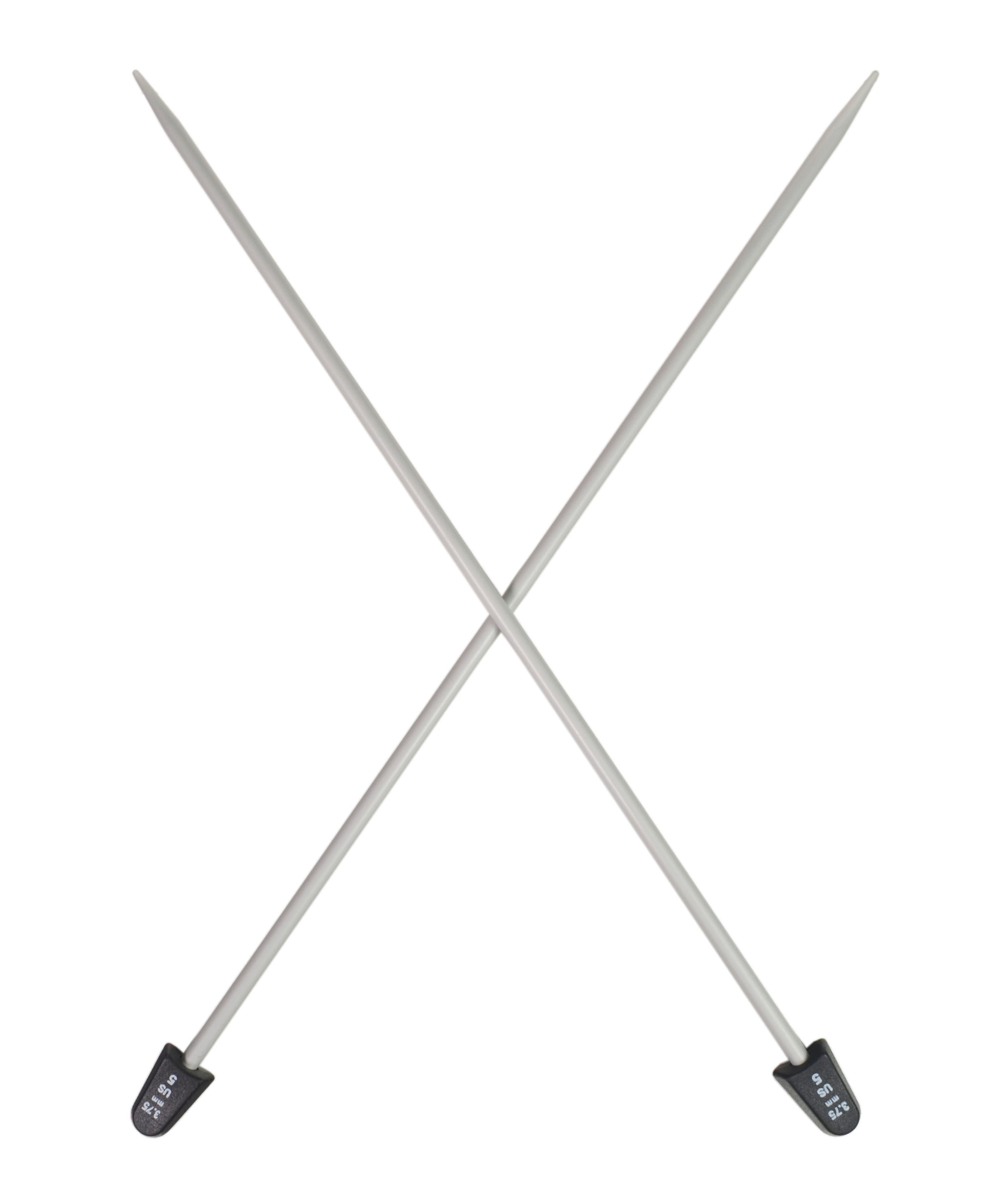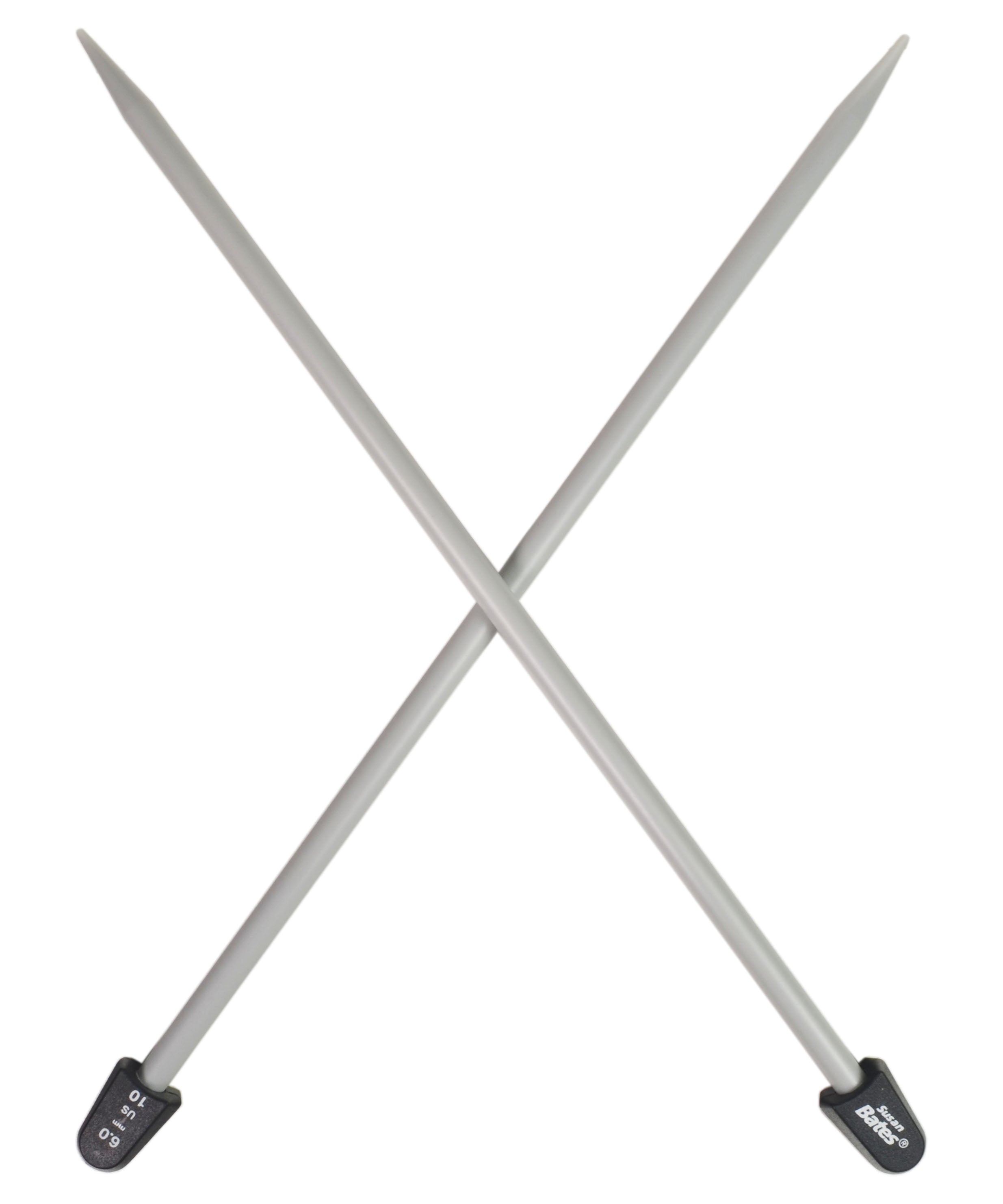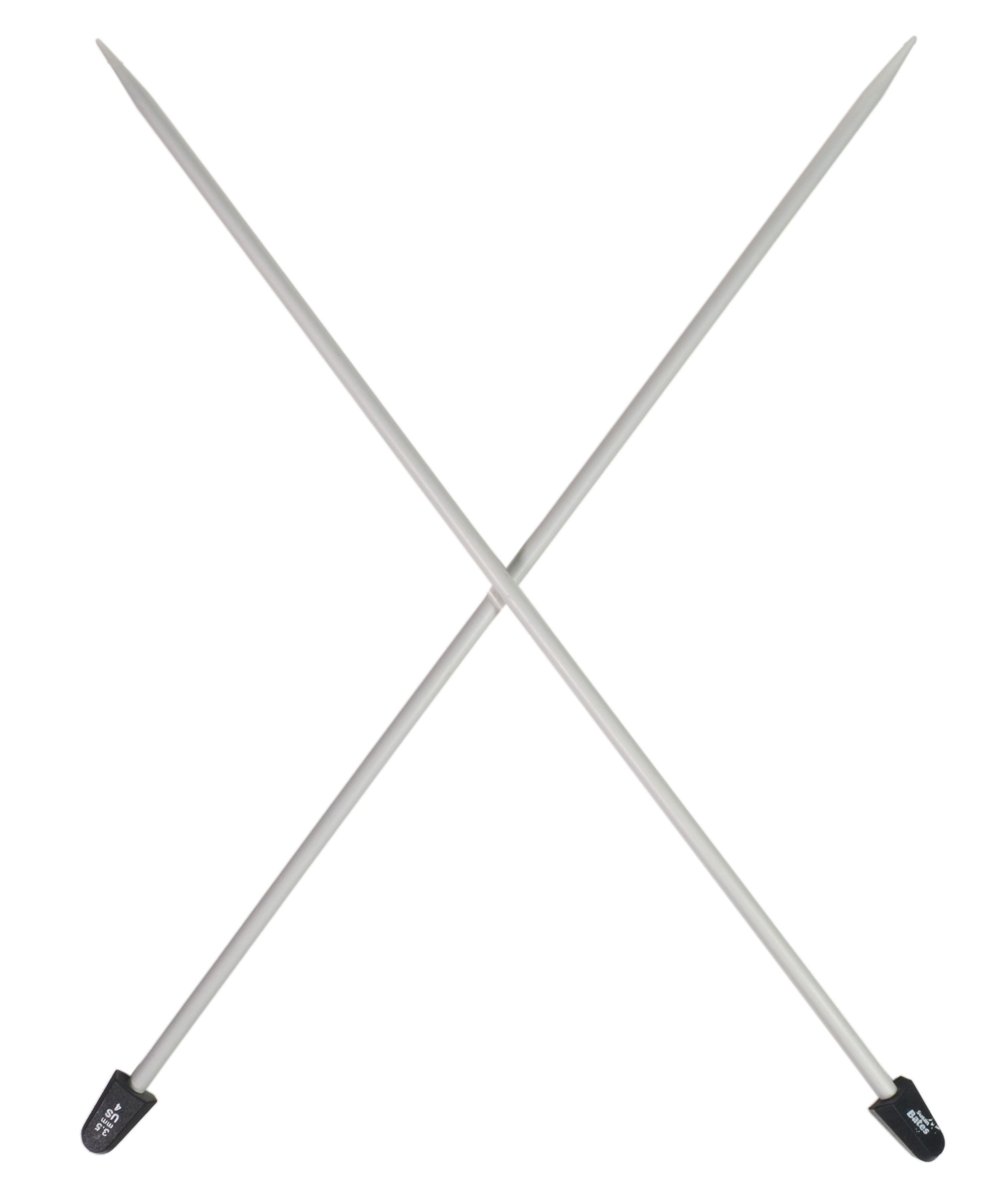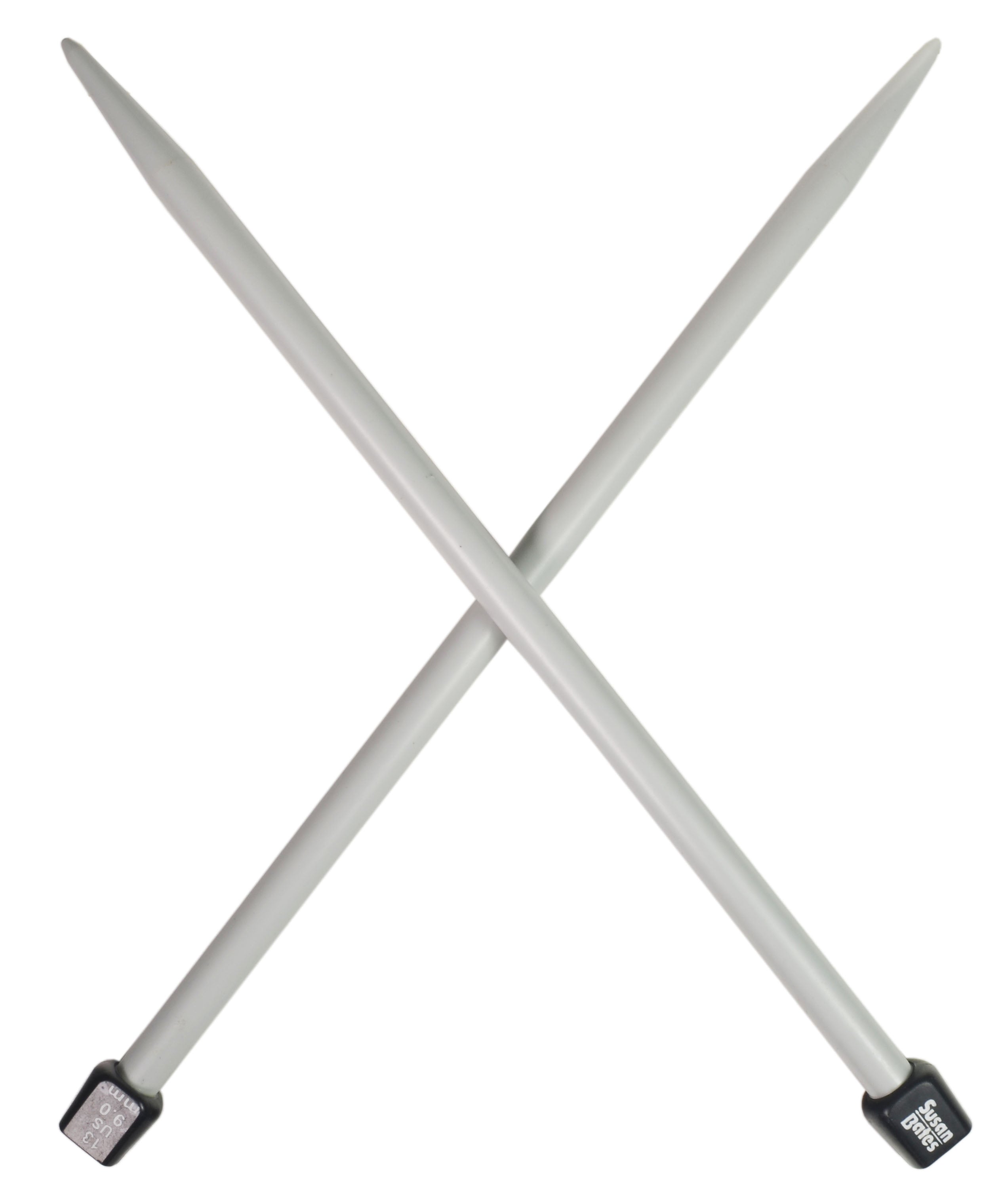 Quicksilver needles are soft grey in color, a result of a special anodization process which gives all Quicksilver needles and hooks an exceptionally smooth, glass-like finish. As weight is a key factor with comfortable needles, the large needles (sizes 9 and up) are a solid plastic shaft. Susan Bates 10” single point knitting needles.
