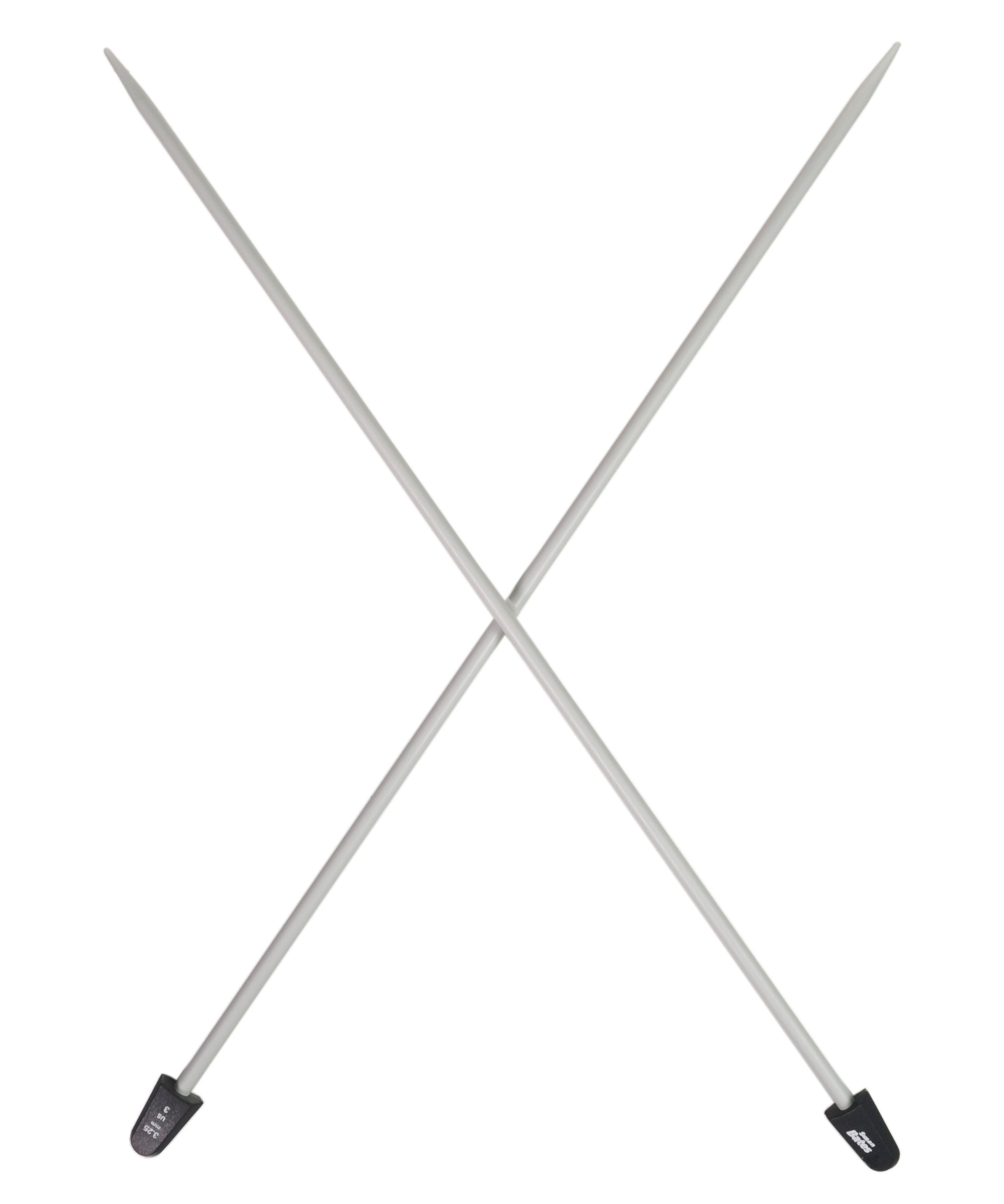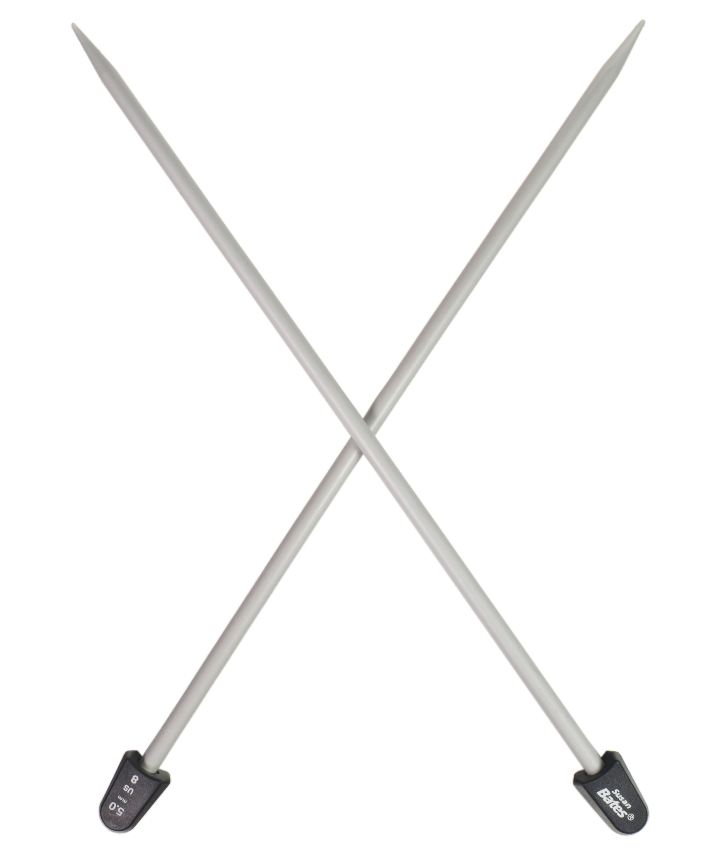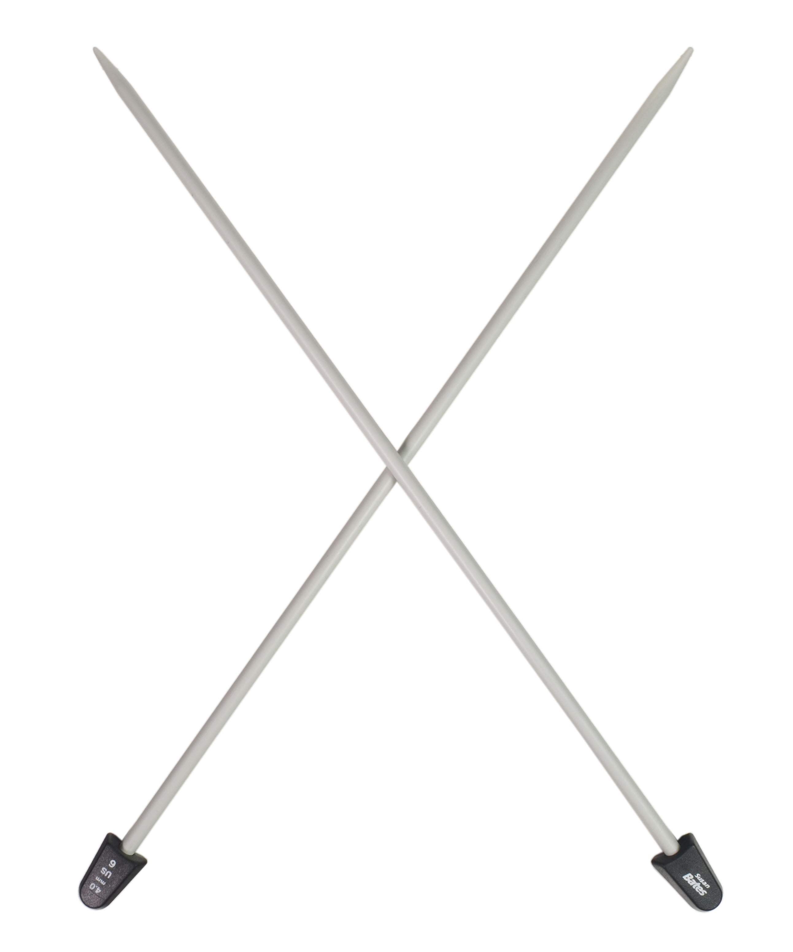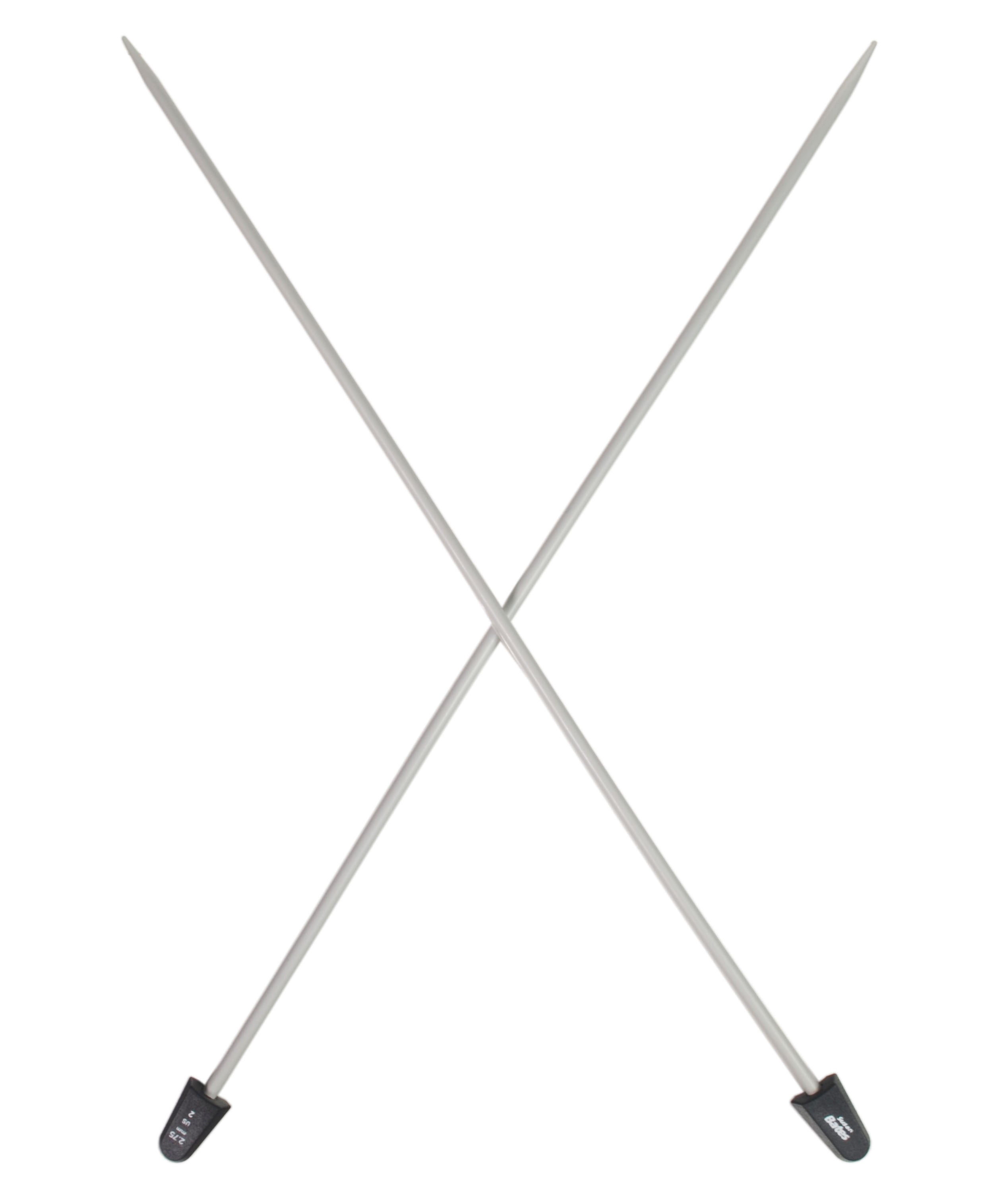 Quicksilver needles are soft grey in color, a result of a special anodization process which gives all Quicksilver needles and hooks an exceptionally smooth, glass-like finish. As weight is a key factor with comfortable needles, the large needles (sizes 9 and up) are a solid plastic shaft. Susan Bates 10” single point knitting needles.