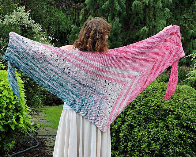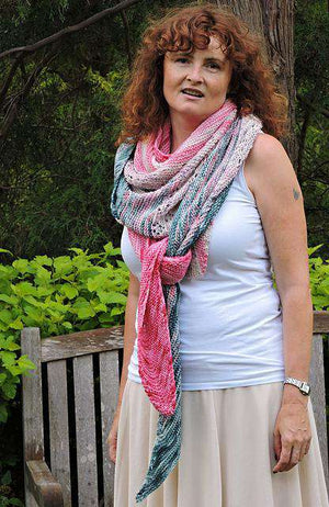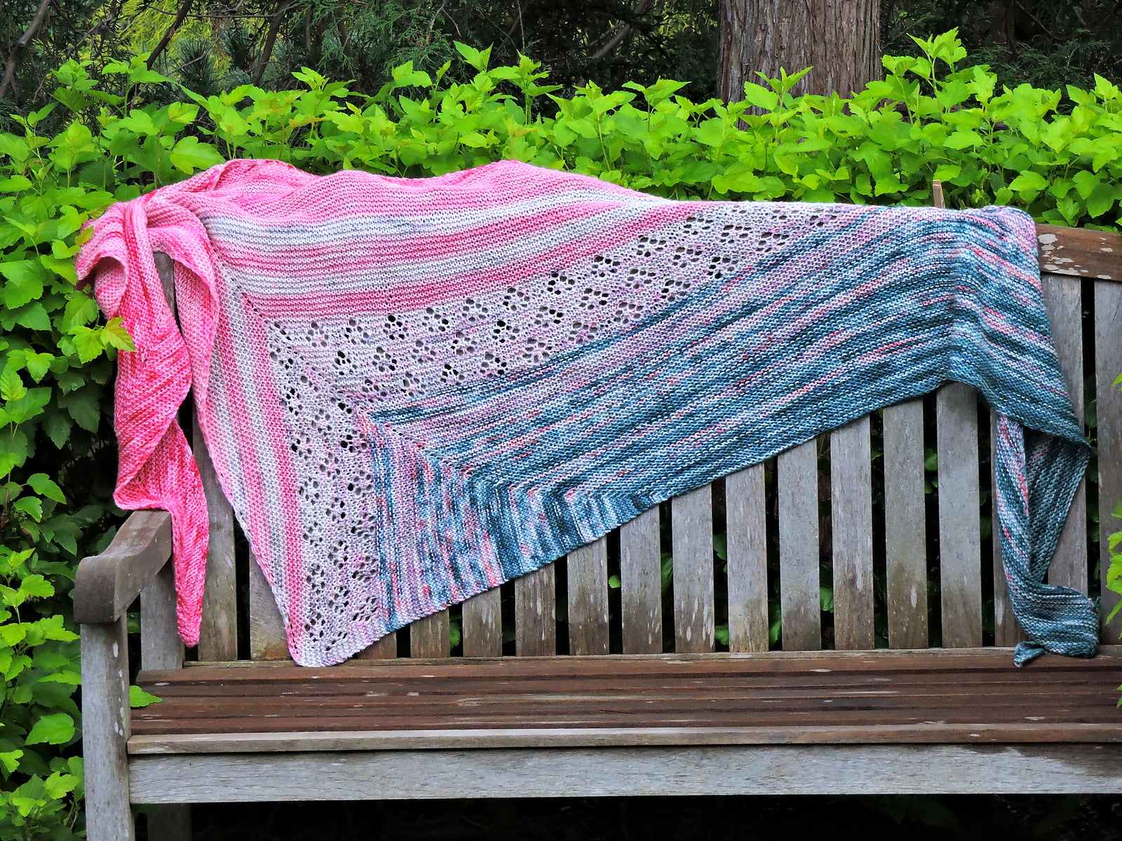 This shawl is knit from one corner to the widest part. Gauge is not crucial for this project.