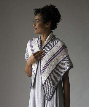 LightThis graphic shawl is knit in one piece from the top down. With so many colors in the Bamboo Pop palette including solids, multis, and dots, you’ll have a blast choosing just the right shades for your project.