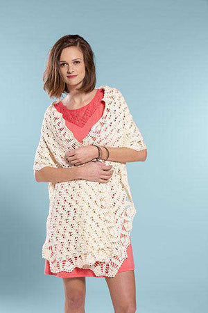 The body of this Shawl is crocheted from one end to the other. The border is worked around the entire perimeter of the Shawl. Stitch patterns are both written and charted.