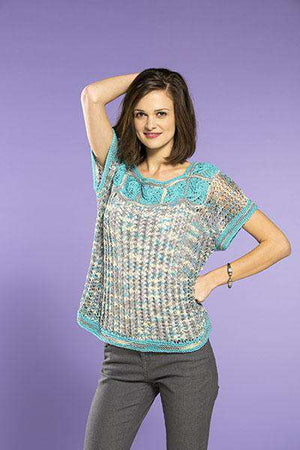 Motifs for the yoke are knit and sewn together. The front and back are knit separately and then sewn to the yoke motifs. Stitch patterns are both written and charted.