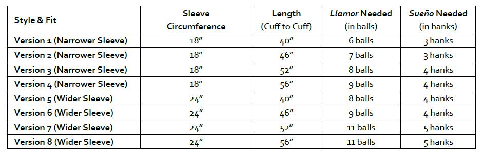 • Yarn Needed: HiKoo® Llamor, 100% Llama, 109 yd / 50 g ball * Please make sure to check size chart image for how many skeins you will need.